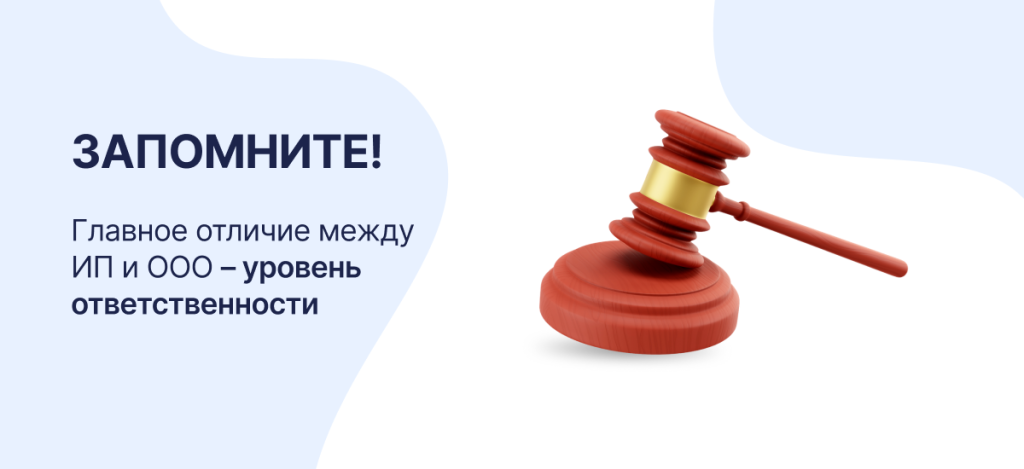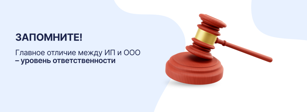 ИП отвечает по обязательствам всем своим имуществом, включая личные активы. ООО же несёт риски только в пределах уставного капитала, и это делает компанию более защищённой.