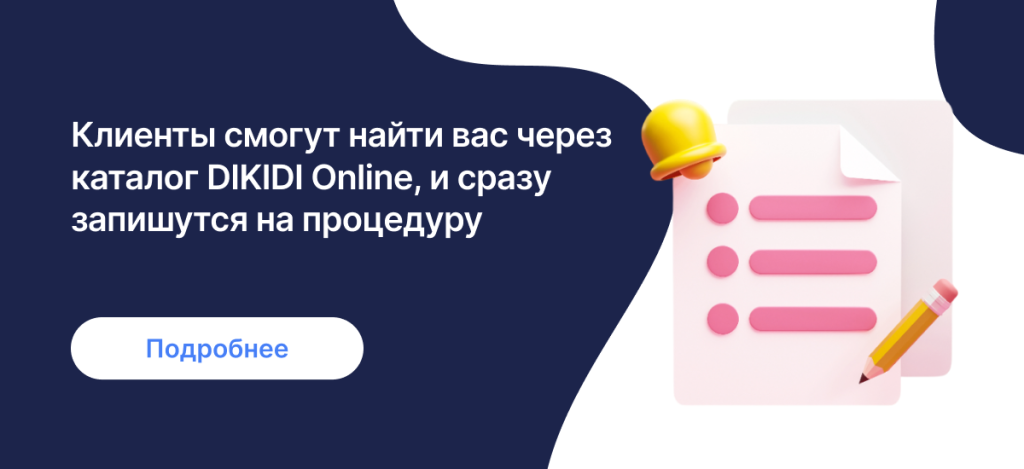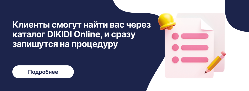Чтобы клиенты нашли ваш салон, важно быть видимыми в тех каналах, где они ищут услуги. Начните с базового – заполните профиль вашего салона в DIKIDI Business: добавьте фотографии, часы работы, ссылки на соцсети. Создайте “визитную карточку” вашего бьюти-пространства прямо в приложении.